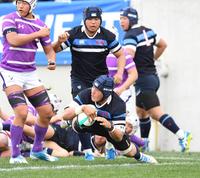 前半、ボールを奪い合う東海大仰星(左)と東京=花園ラグビー場(撮影・田中太一)