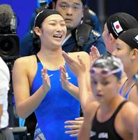 女子4×200mフリーリレー決勝、4位に終わり苦笑いする池江璃花子=東京辰巳国際水泳場(撮影・堀内翔)