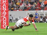世界選抜に敗れ、肩を落とす日本代表・ツイ(中央)ら日本代表フィフティーン(撮影・北村雅宏)