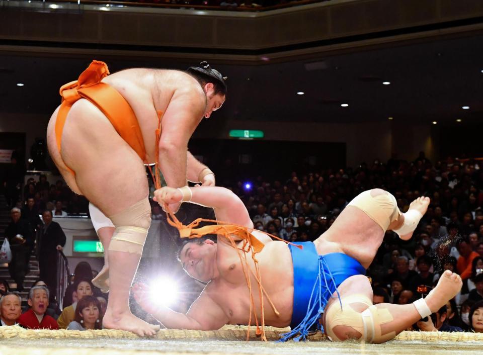 魁聖も1敗をキープ 琴奨菊に土俵際でのすくい投げで2場所ぶりの勝ち越しに王手