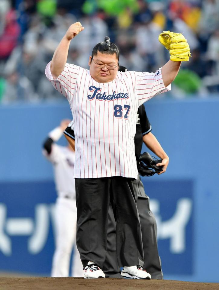 元関脇・豪風の押尾川親方が故郷・秋田で始球式「国技館とは違った圧力」