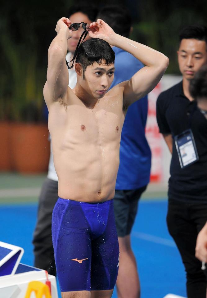 萩野公介が試合会場で練習、3日の復帰を前に笑顔も