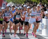 MGCをスタートする設楽悠太、大迫傑=明治神宮外苑(撮影・堀内翔)
