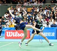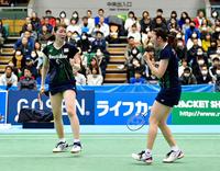 全日本総合で初優勝した永原(左)・松本ペア=駒沢体育館(撮影・出月俊成)