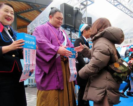 朝乃山、ユニセフ募金でファン殺到「今の番付より上を」募金の意義も学ぶ