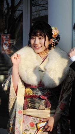 選手として普段はクールな姿を見せるが、成人式ではクリーム色のキュートな振り袖姿で、楽しそうに友人と言葉を交わした。母のお下がりの晴れ着に「変身してうれしかったです」とにっこりした。
