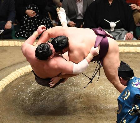 関脇に陥落した高安(田子ノ浦)は隠岐の海(八角)を押し出して初白星。10番勝って大関復帰を目指す。自己最高位の西前頭5枚目に付けている注目の炎鵬(宮城野)は、正代(時津風)の上手投げに押しつぶされ1勝1敗となった。