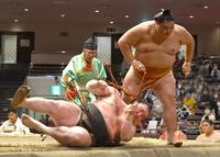 白鵬が連敗で2敗目、御嶽海に敗れる 朝乃山と照ノ富士が1敗守り13日目対戦
