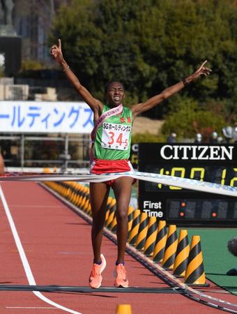 男子は3区のコスマス・ムワンギ(2年)が区間新記録でトップに立ち、そのまま後続が首位を守った。アンカー7区に抜てきされた2年生の塩出翔太は、猛追する仙台育英・白井勇佑(3年)を激走で振りきった。「(仙台育英は)つめてくると思ったが、最終コーナーで差があった」と勝利を確信。早々にガッツポーズを繰り出し、テープを切った。