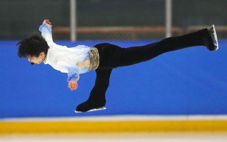 男子SPで、ジャンプの着氷でバランスを崩す羽生結弦=バリー(共同)