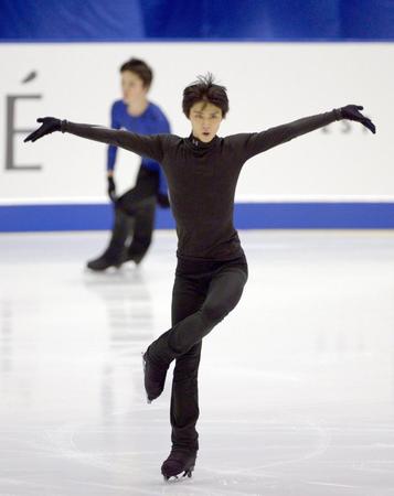 開幕を前に調整する宇野昌磨=真駒内セキスイハイムアイスアリーナ