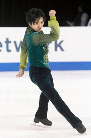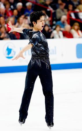 男子フリー 演技する宇野昌磨=スポケーン(共同)