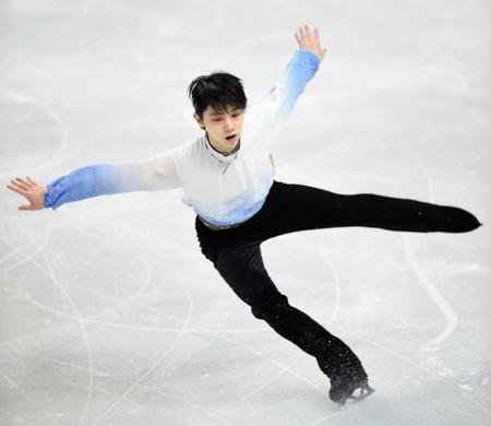 2季ぶりの優勝を狙う14年ソチ五輪金メダリストの羽生結弦(21)=ANA=は、文句なしの演技で、自身の持つSP世界記録(110・95点)に迫る110・56点で断トツの首位発進を決めた。
