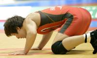 日本のトリで登場した浜口が、第1ピリオド1分10秒でフォール負けした後、マットの中央に意味深なキスをして引き揚げた。