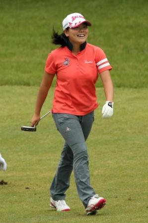 ピンチの後にはチャンスあり。14番からは4メートル、5メートル、1メートル、1メートル、3メートルと、次々にチャンスを沈めまくり、圧巻の5連続バーディー。「1番ティーグラウンドにカメラマンの方がたくさん来て、ショットを打った後どこを向いてればいいのか戸惑っちゃいました」と照れ笑い。4番でもさらにバーディーを追加した。