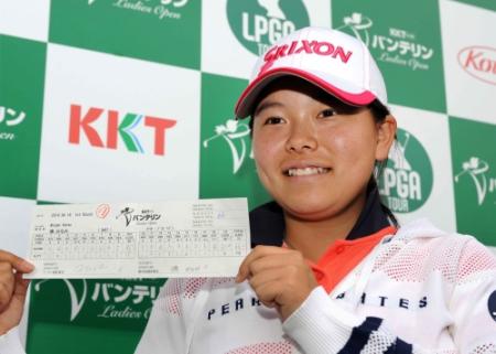 15歳の女子高生が飛び出した。アマチュアの勝みなみ(15)=鹿児島高1年=が5連続を含む6バーディー、ノーボギーの66。現在賞金ランクトップのO・サタヤ(タイ)とともに6アンダーで首位に立った。2日目は初体験のプロ競技最終組でのラウンドだ。1打差の3位にイ・ボミ(韓国)が続き、横峯さくらは69で7位につけた。森田理香子は42位と出遅れた。