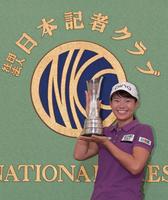 日本記者クラブで書の腕前を披露した渋野日向子(撮影・金田祐二)