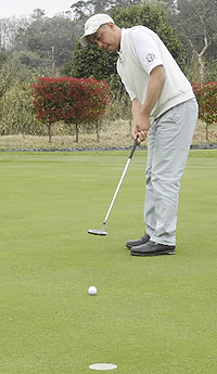 シニアアマ予選に続き、本大会出場を決めた丹羽俊一=吉川インターゴルフ倶楽部メッチャ