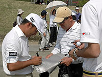 初出場で、多くのギャラリーを集めたすし石垣(33)=ゴルフパートナー=は、妙なガッツポーズや突然の気合の掛け声などでギャラリーを喜ばせたり、驚かせたりと期待に応えた。ただプレーは不調のようで、この日も76で予選落ち。「ねっ、調子悪かったでしょう」と、納得顔?でコースを後にした。