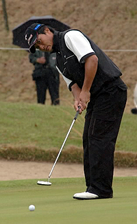 1日目は2オーバーと力を出し切れなかった。「周りがプロばっかりで緊張して…。きょうは気楽にいけましたよ。雨も気になりませんでした」。他のアマ選手が軒並みスコアを崩す中、イーブンパーでまとめた。