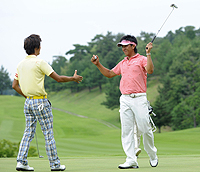 18番のウイニングパット―。激闘に終止符を打った瞬間、上井は両腕を夏空に突き上げた。一時は2位スタートの谷岡に逆転され、前半を終わった時点で2打差をつけられる苦しい展開。それでも最後は“バーディー王”の意地がさく裂した。