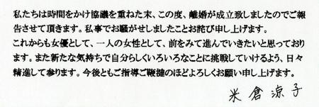 米倉は直筆署名入りの文書で「私事でお騒がせしましたことをお詫び申し上げます」「これからも女優として、一人の女性として、前をみて進んでいきたいと思っております」とコメントした。