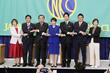ゴジラポーズを決める宮野真守(右)と真矢ミキ=TOKYO DOME CITY HALL(撮影・棚橋慶太)