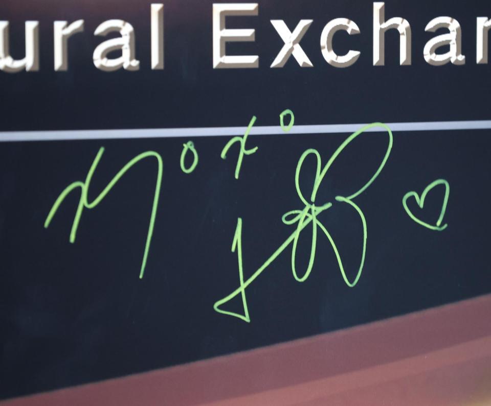 ボードに書かれた深田恭子のサイン(撮影・西岡正)