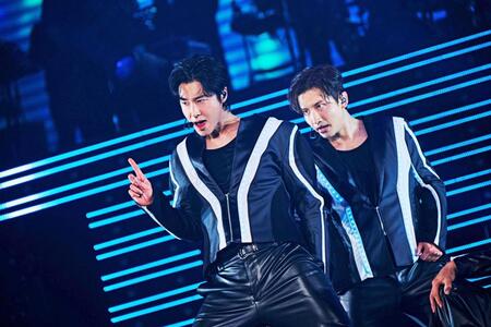 チャンミン(37)は「今日は記念すべき特別な日。東方神起が日本デビュー20周年を迎える4月27日です」と切り出し、「皆さんも“20歳”になりました。おめでとうございます。スペシャルな日に会えるのは光栄」と笑顔を見せた。ユンホ(39)が「今日はヤバい。ここにいる皆さんも覚悟を決めて!」とあおり、ファンもん絶の圧巻パフォーマンスを繰り広げた。