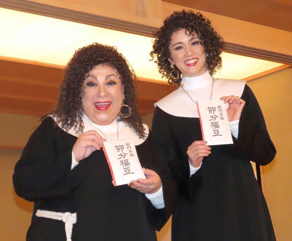 水天宮で豆まき芸能人続々 平祐奈は神職装束で豆まき、森公美子らはアフロ修道女「水天宮は懐が深い」