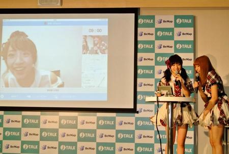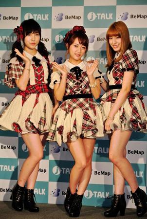 AKB48の高橋みなみ(24)が29日、都内で、同時通訳サービス「J-TALK」の発表会に、高橋朱里(17)、平田梨奈(17)と供に登場した。