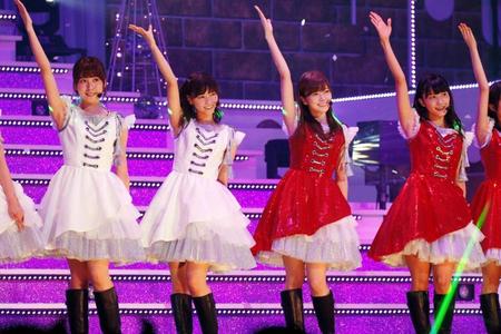 ファン1万人を前にしたメンバーは、初出場を祝うかのように、サンタ風コートから赤白ファッションへの早着替えを盛り込み、歌唱曲に決まった「君の名は希望」も披露。