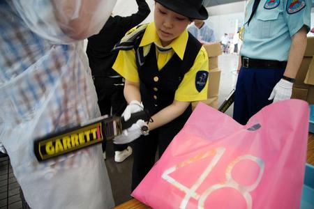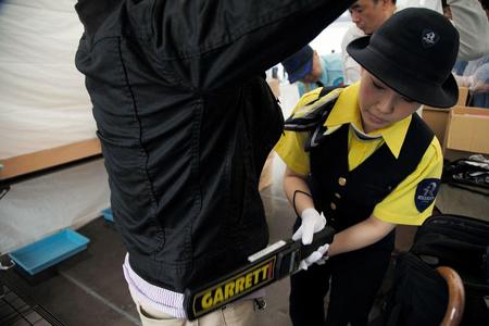 警備員が金属探知機でチェック