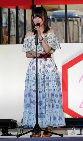 6位にも神妙な面持ちでステージへ向かうHKT48兼AKB48・宮脇咲良=HARD OFF ECOスタジアム新潟(撮影・佐々木彰尚)