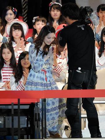 8位に入り、ステージの中央へ向かうAKB48・島崎遥香=HARD OFF ECOスタジアム新潟(撮影・佐々木彰尚)