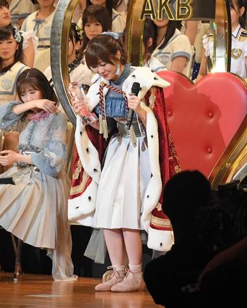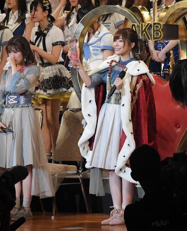 2位で卒業を発表した渡辺麻友(左)と3連覇を達成した指原莉乃(撮影・堀内翔)