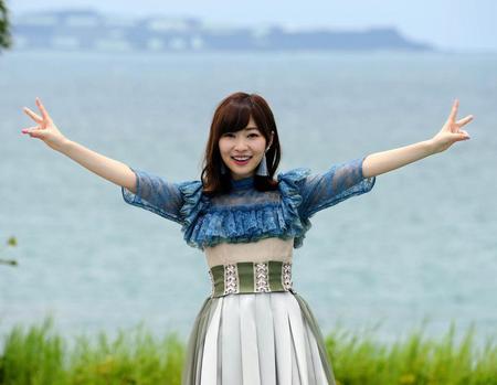 3連覇を果たし、スピーチする指原莉乃=沖縄県豊見城市立中央公民館(撮影・堀内翔)