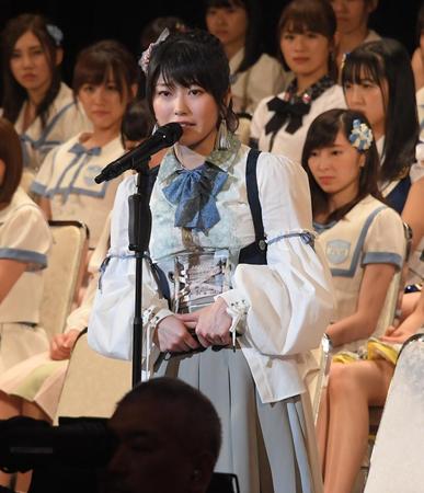 「神7」に選出された7位の横山由依=沖縄県豊見城市立中央公民館(撮影・堀内翔)