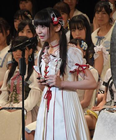 5位となりスピーチする荻野由佳=沖縄県豊見城市立中央公民館(撮影・堀内翔)