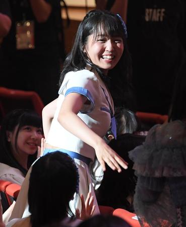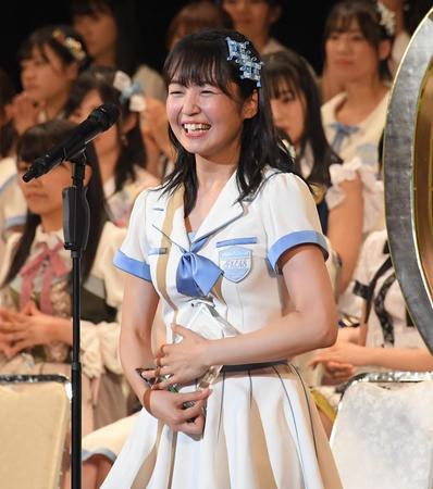 8位に笑顔がはじける惣田紗莉渚=沖縄県豊見城市立中央公民館(撮影・堀内翔)