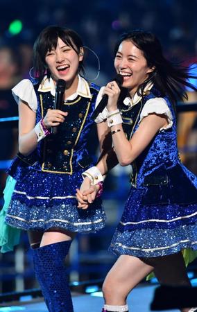 笑顔でステージを織り上げる松井珠理奈と岡田奈々=ナゴヤドーム(撮影・中田匡峻)