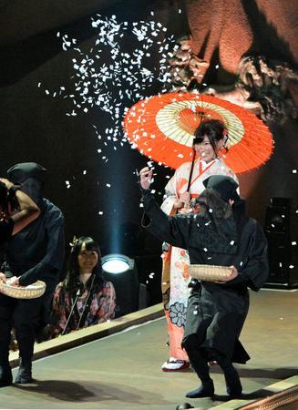 演歌歌手のように花びらを浴びながら入場する岩佐美咲=東京・日本武道館(撮影田村亮介)