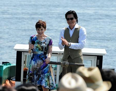 役柄が、資産家の老人たちと遺産目的で結婚し、不可解な死別を繰り返す“悪女”とあって「私がこういう役をするのを(さんまが)喜ぶんじゃないですか。『殺されなくて、よかった』とか言ってるのが想像できます」と映画の公開後に格好のネタにされるであろうことも予測して、笑いを誘っていた。