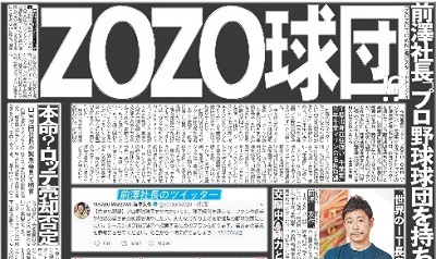 野球 プロ野球ZOZOTOWN新球団ホリエモンロッテ ZOZO前澤社長「プロ野球球団を持ちたい」ツイートに球界騒然!協力者も続々名乗り 衣料品通販サイト「ZOZOTOWN」運営会社社長の前澤友作氏が自身のツ… 2018.07.22