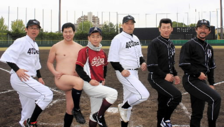 売れた弊害を嘆く安村だが、売れてよかったと思うことの方が比べ物にならないほど多いはず。↑の写真はプロ野球昭和40年会ののレジェンドたちと全裸ポーズ!。(左から)古田敦也氏、とにかく明るい安村、ココリコ・遠藤章造、山本昌氏、DeNA・三浦大輔投手、中日・小笠原道大2軍監督(所属・肩書きは当時)。ちなみにこの写真を撮った4ヵ月後、不倫問題が発覚し、妻に4時間も罵声を浴びせられた。