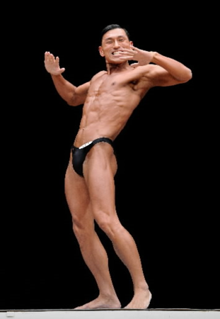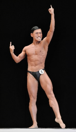 予選では、規定ポーズの中で代名詞のギャグ「トゥース!」のポーズを決め、決勝のフリーポーズでは「鬼瓦」のポーズでフィニッシュした。また、同級には、お笑いタレント・なかやまきんに君(36)も初出場し、2位となった。