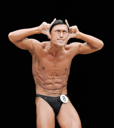 ボディビル挑戦2年目で東京大会5位に!「トゥース!」「鬼瓦」ギャグてんこもりで2位きんに君とマッチョ競演も