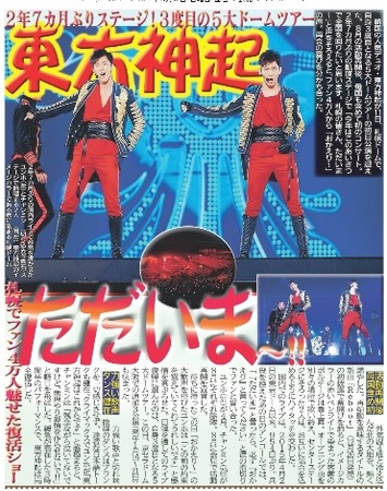 東方神起が21日、大阪・京セラドーム大阪で5大ドームツアーのファイナル公演を行い、史上初となる日産スタジアム3DAYS公演(6月8、9、10日)を行うことを発表した。