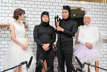 お笑いトリオのダチョウ倶楽部は、都内で行われた洗顔商品「どろあわわ」の新商品PRイベントに登場。