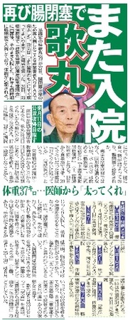 歌丸、腸閉塞でまた入院
